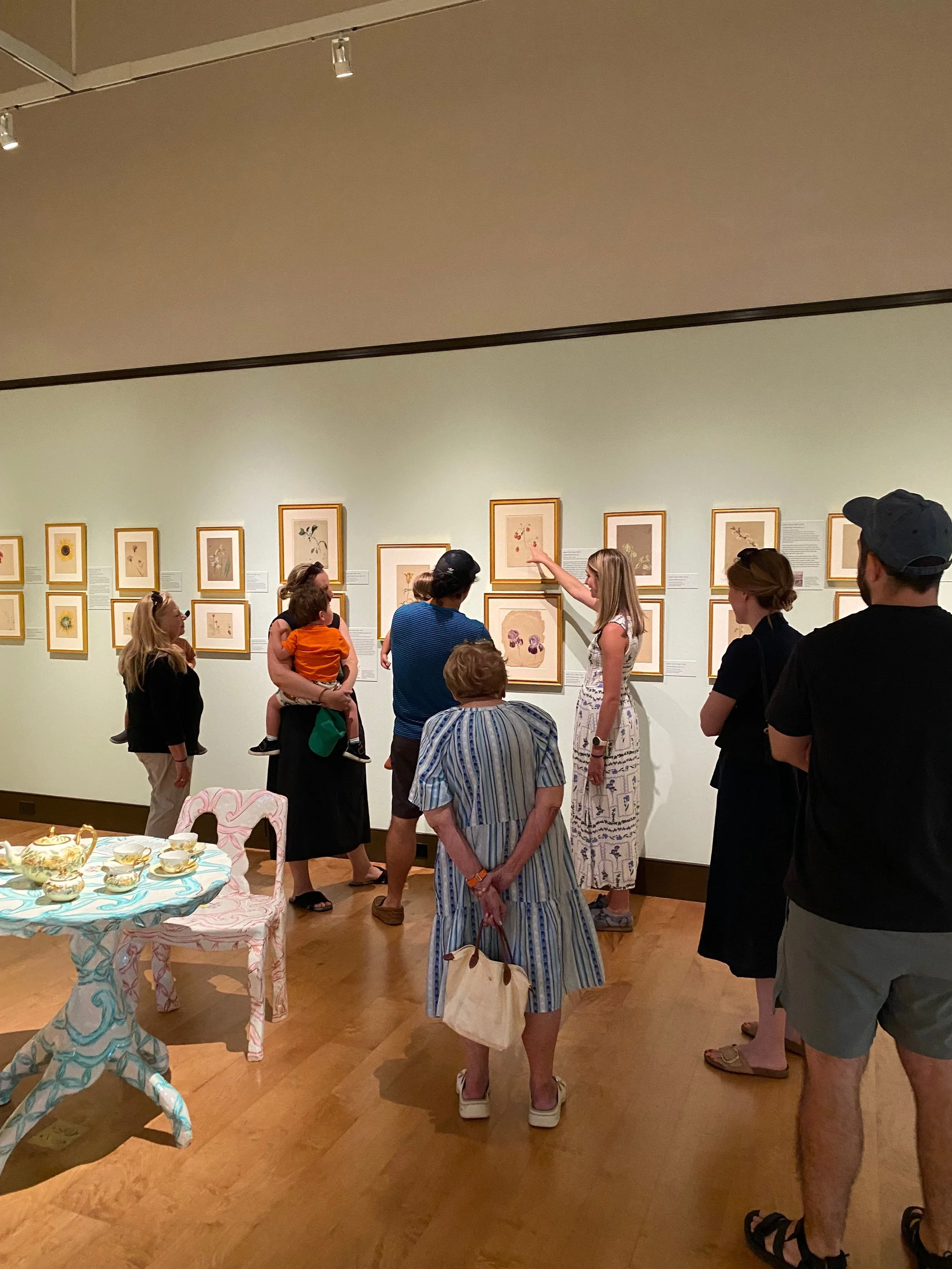 At the site, I’ve become much more confident with the history and rhythm of daily operations. I even led a children’s family tour and play where we explored the garden and the Emily Cole exhibit before creating art inspired by nature. Working alongside Beth, our Education Coordinator, I helped with workshops on natural plant dyes, a garden tour and pressed flower jars. These programs have been a rewarding way to connect with visitors and reminded me how much I enjoy the education side of museum work.